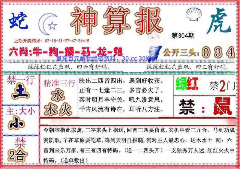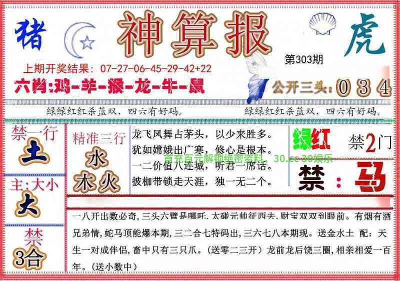 | 307期:三头中特【2头3头4头】开狗20准 |