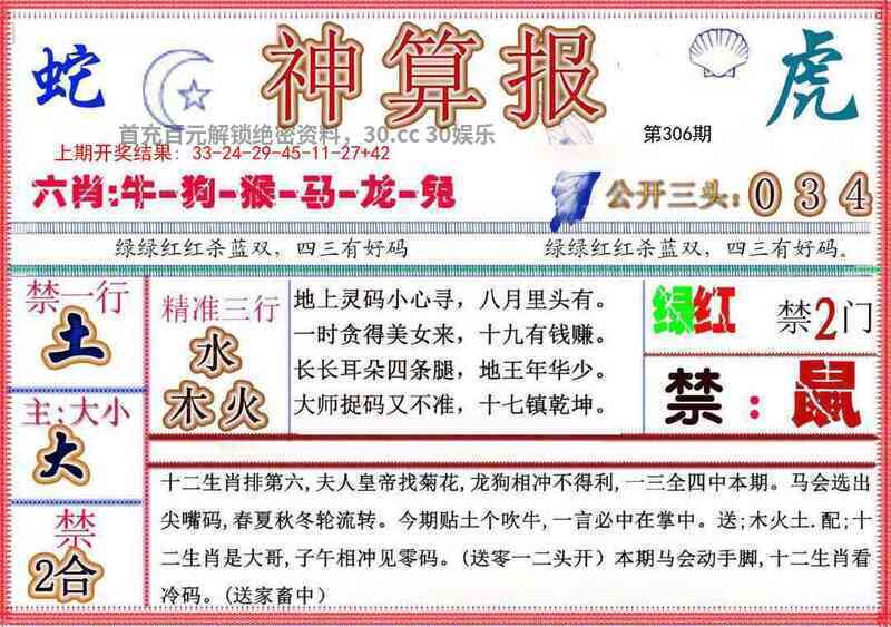 | 306期必中六肖╠猪羊蛇马虎龙╣开牛17错 |